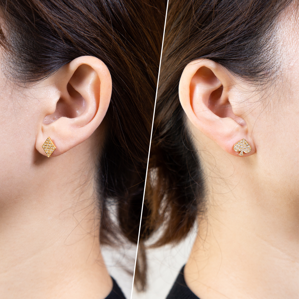 プレイフルなトランプモチーフのピアス。パヴェセッティングの美しさが耳元で上品に際立ちます。両耳でモチーフ違いにしたり、色違いにしたり、たくさんの組み合わせをお楽しみいただけます。