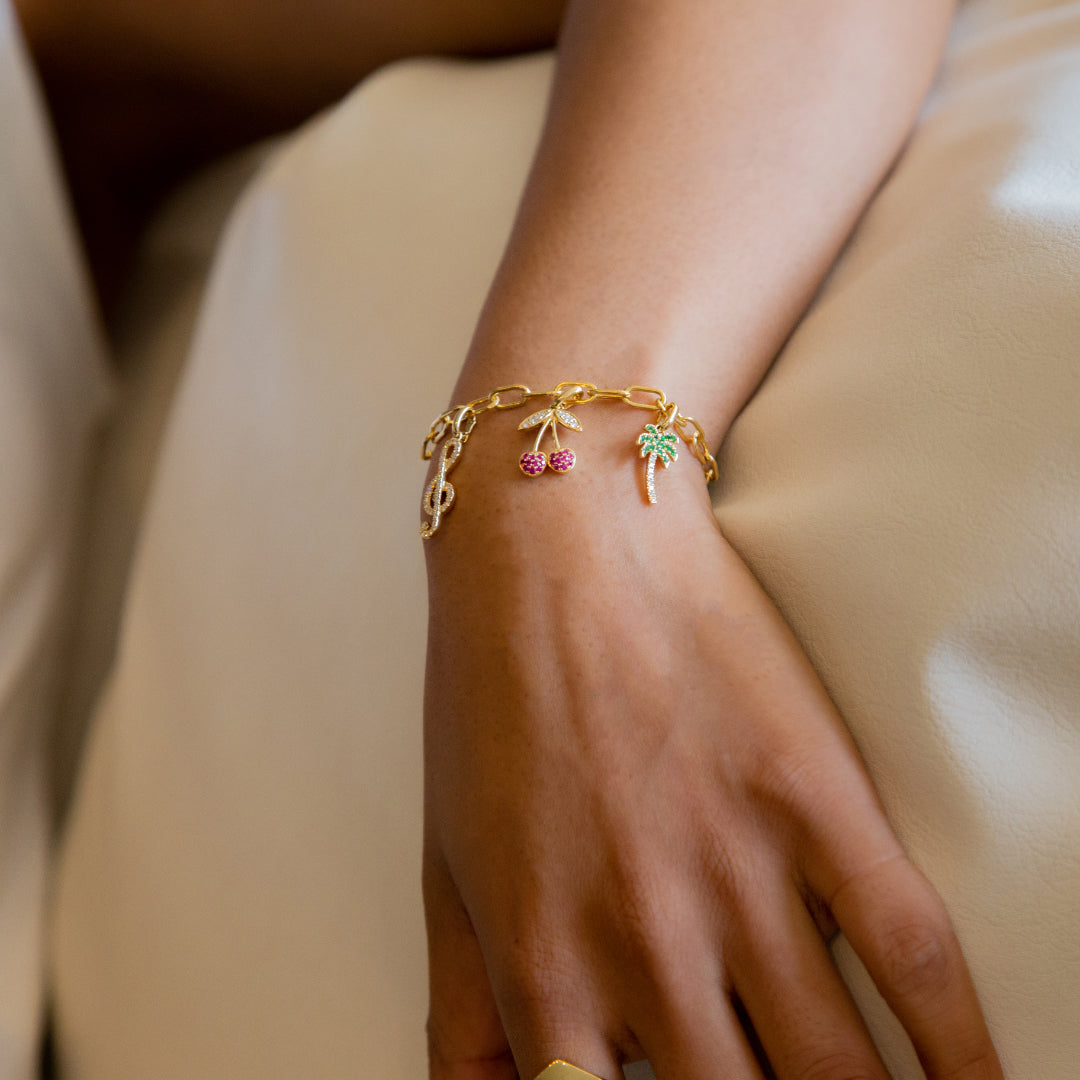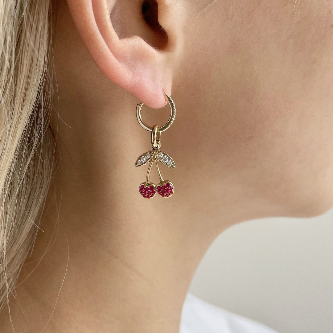 まるでポップアートから飛び出したような、鮮やかに輝くルビーのさくらんぼがチャームになって登場。