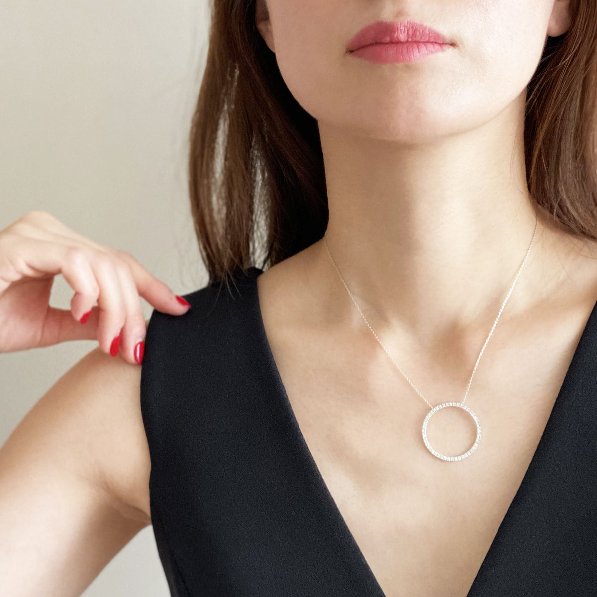 シンプルモダンな○△□シリーズネックレスのダイヤモンドバージョン。