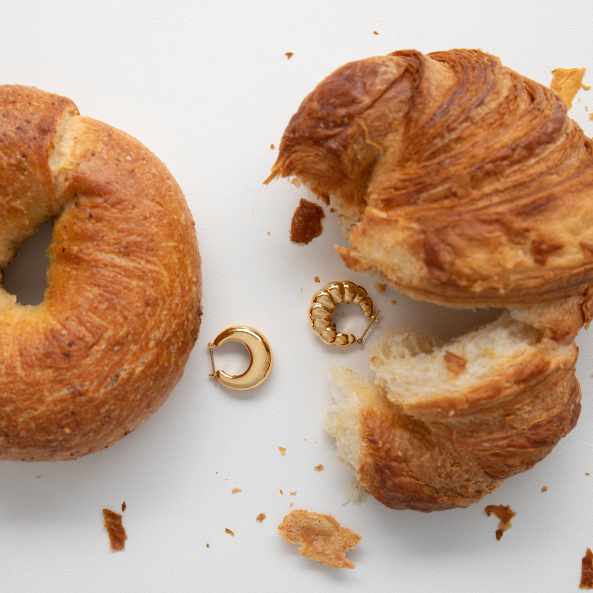 クロワッサンをイメージして作られたピアス。ベーグルピアスとの組み合わせがおすすめです!クロワッサン部分はシルバー925にK18ゴールドプレート、ポスト部分はK18イエローゴールドです。