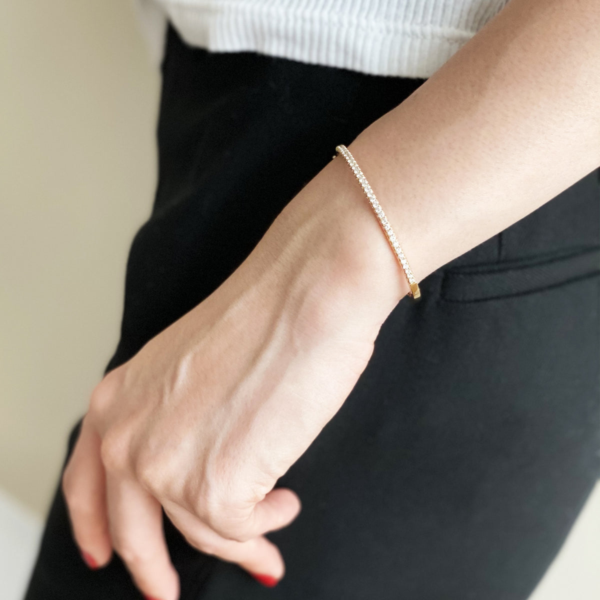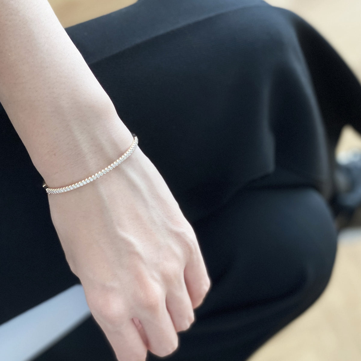手首にぴったりとつけられるバングル。このサイズ感は他では探せないはず!手首にフィットするので邪魔にならず、デイリーにお使いいただけます。