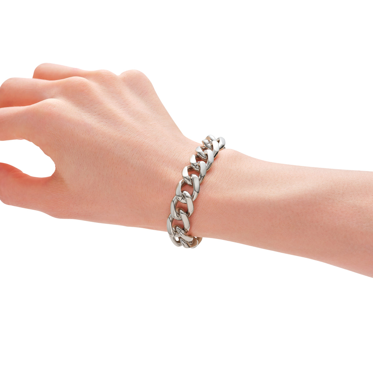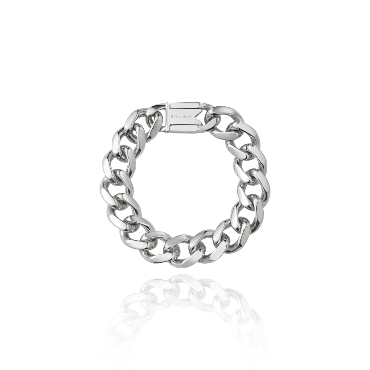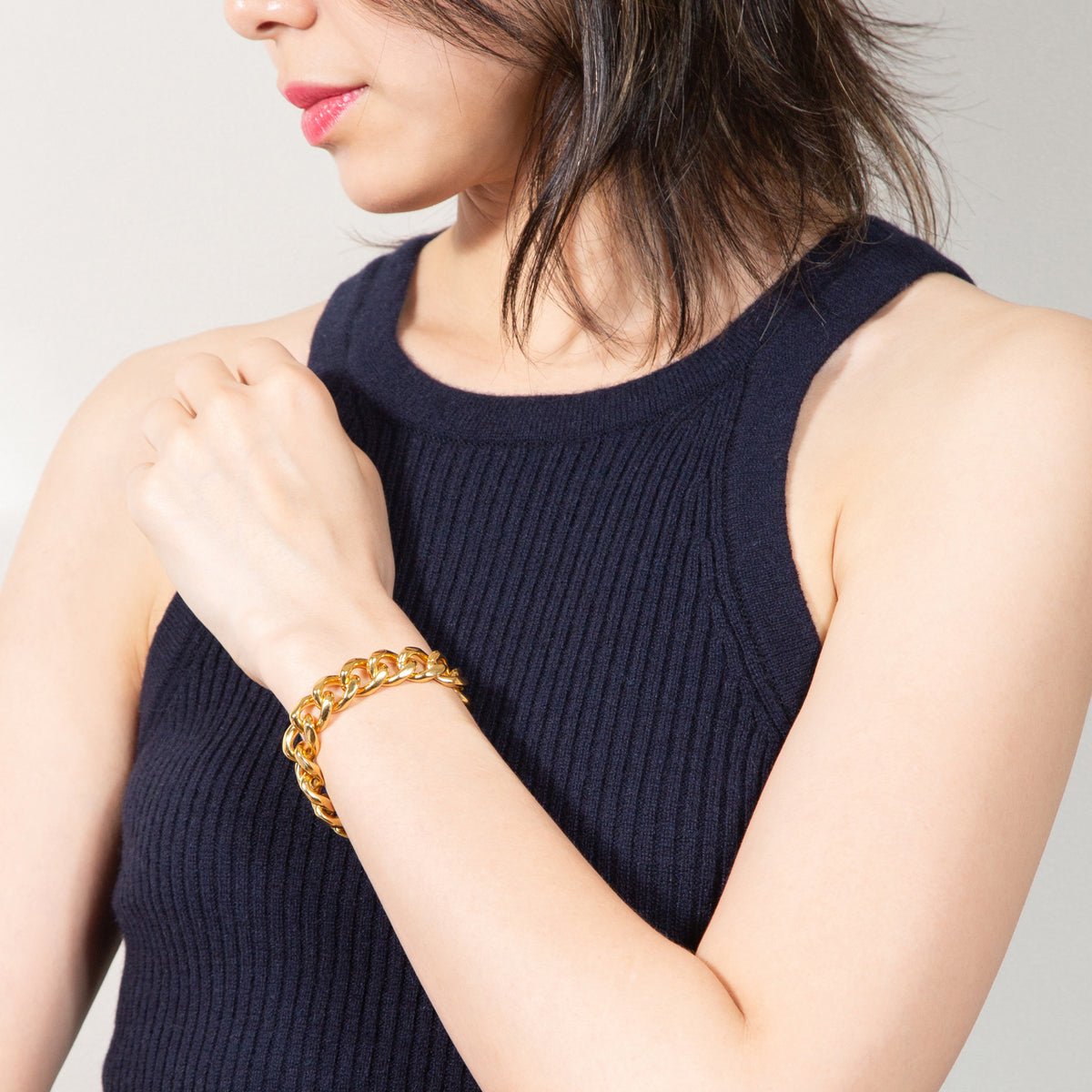 大人気のフラットリンクチェーンをブレスレットに仕立てました。手元にボールドなアクセントを加えたい方におすすめです。