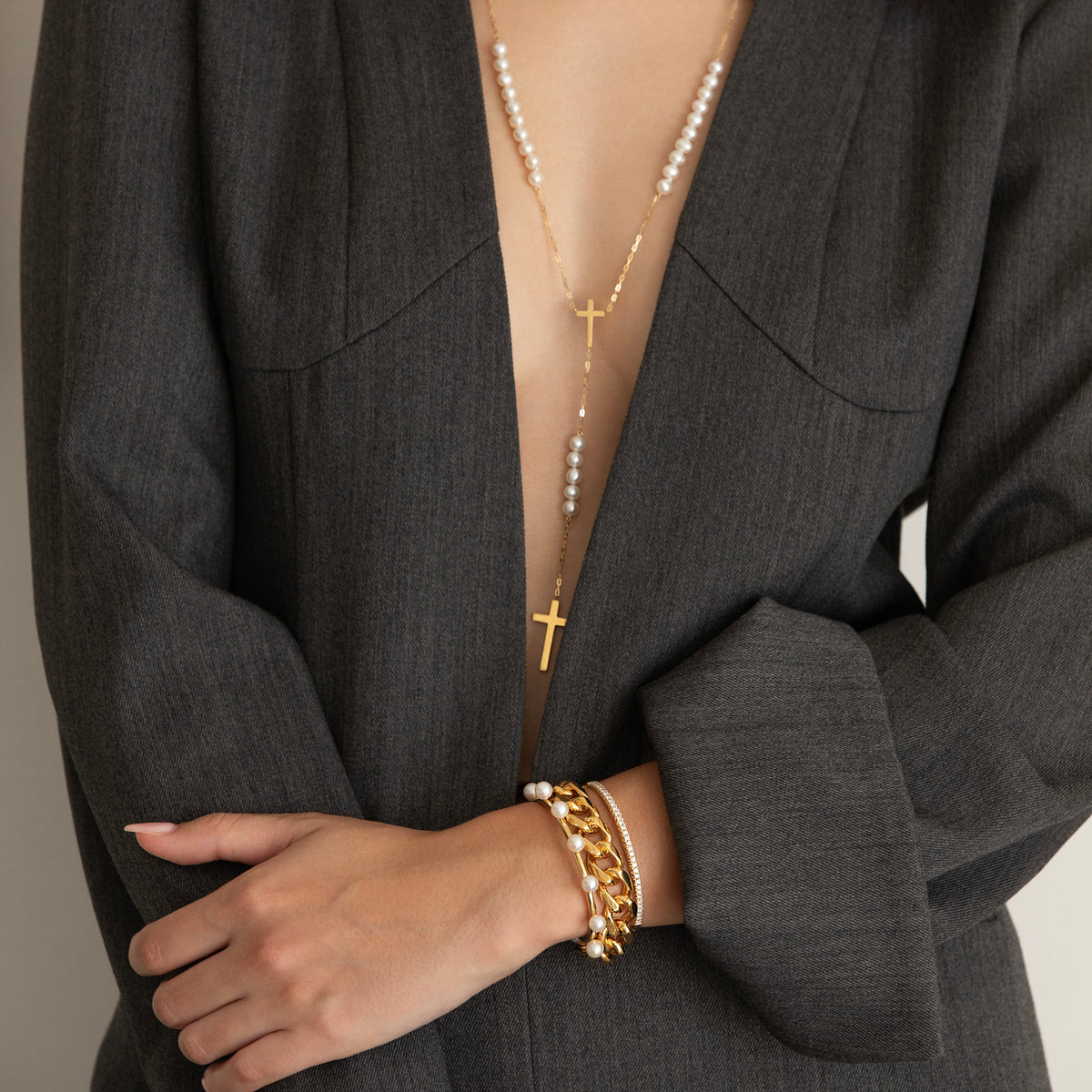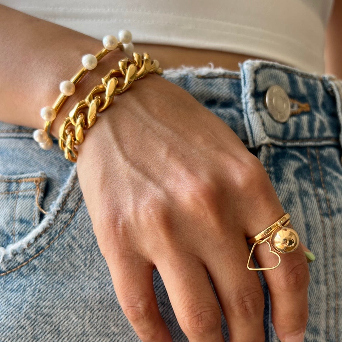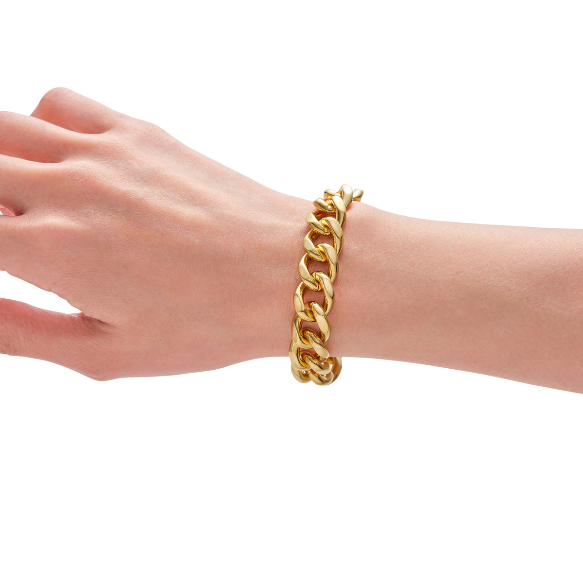 大人気のフラットリンクチェーンをブレスレットに仕立てました。手元にボールドなアクセントを加えたい方におすすめです。