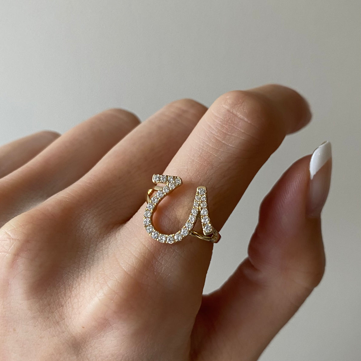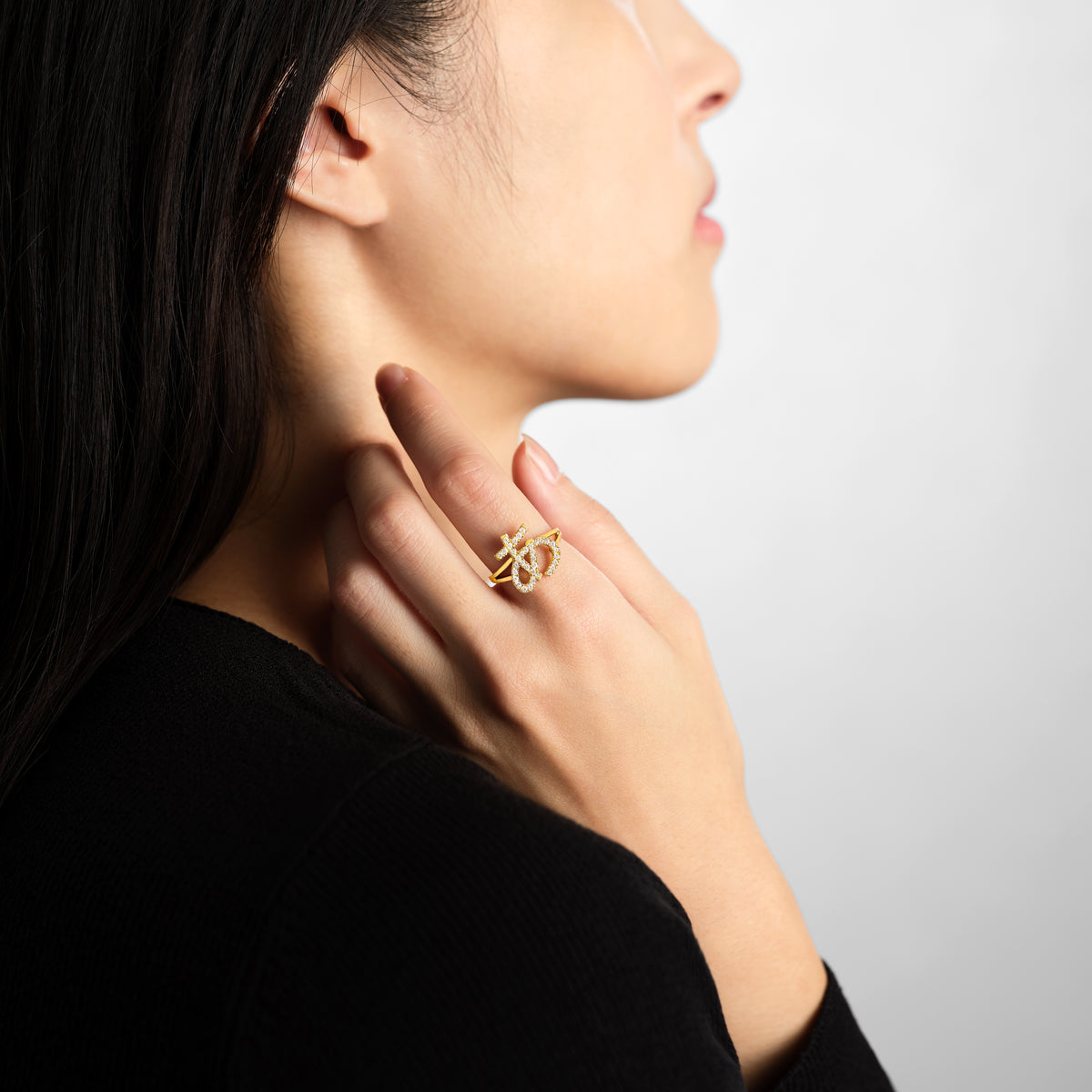 こんなデザイン無かった!ビジュードエムのアイコンジュエリーの一つとも言える「ひらがな」リング。発売以来ベストセラーのアイテムです。丸みのあるフォントがどの文字もかわいく、1つでも存在感を放ちますが、2つ3つと並べて名前や言葉にして身につけたくなるようなリュクスな遊び心溢れるジュエリーです。