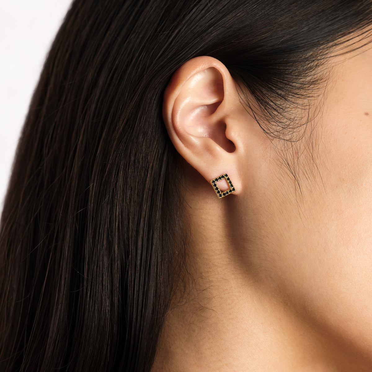 洗練されたフォルムと、ブラックダイヤモンドのクールな輝きが耳元で存在感を放ちます。