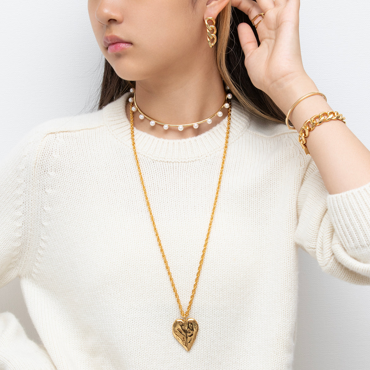 ねんどで模ったような立体的な♡がどんなスタイルにもマッチするネックレス。