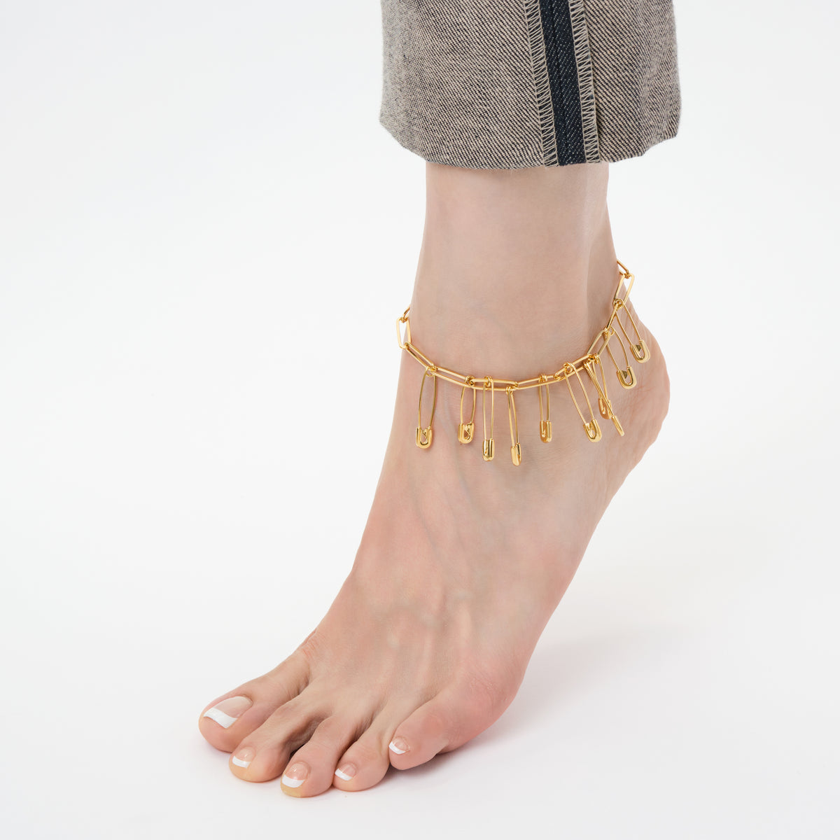 ひとつひとつ手作業で作られている安全ピン!サイズ違いをランダムにあしらったパンクなアンクレット。