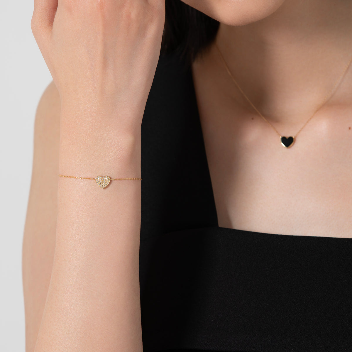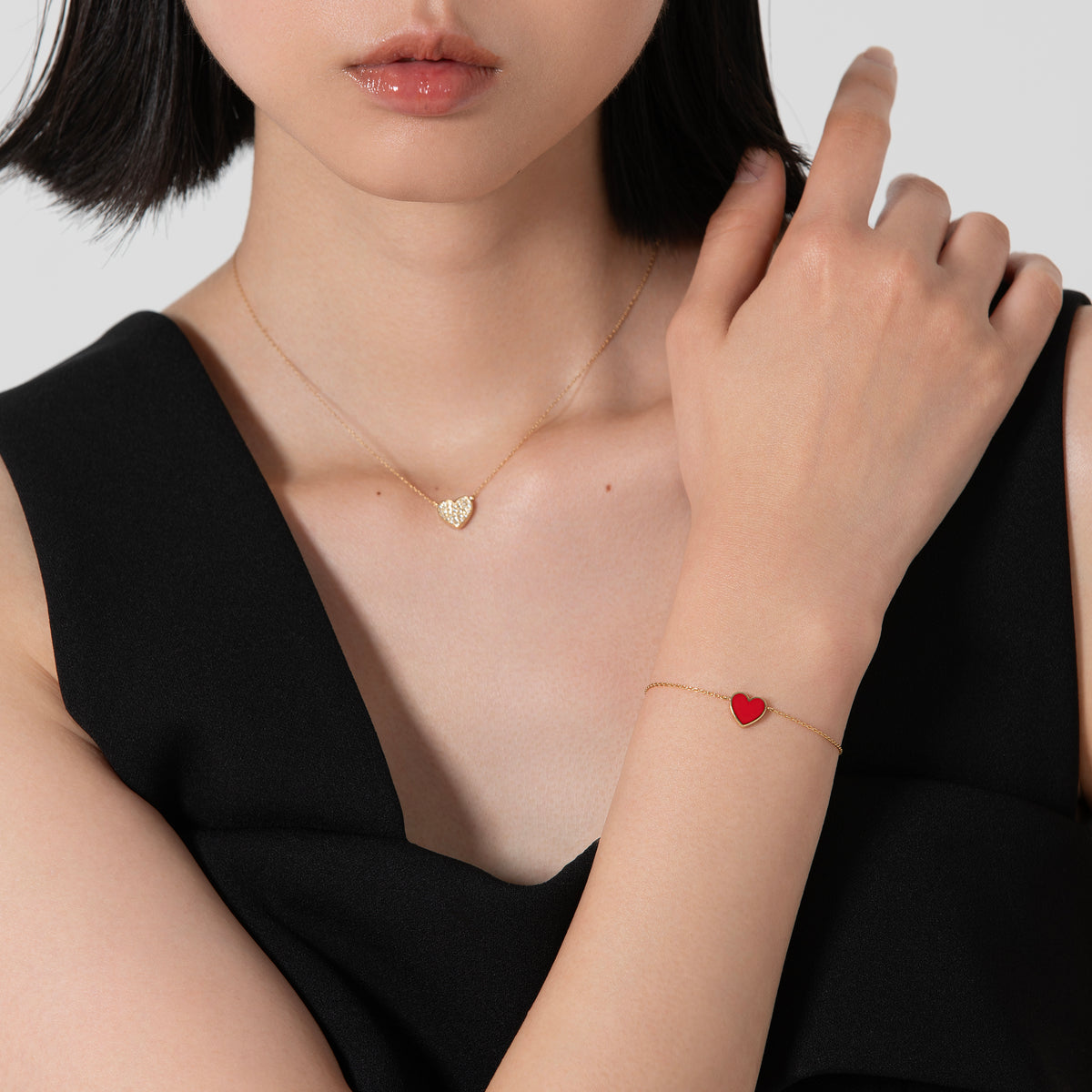 毎日でもつけたくなるかわいいデザイン!定番のハートと、今年のラッキーモチーフでもあるスターのブレスレットです。チェーンの先に輝くのは、赤、白、黒のハートとダイヤモンドのハート。両面使える仕様になっております。K18イエローゴールド、ダイヤモンドと艶やかなカラーのコンビネーションが、手首にキラリとかわいさを演出します。ベーシックで毎日つけられるデザインで、シーンやコーデを選ばずに、ずっと身につけられるデザインです。単品使いはもちろん、お手持ちのブレスレットとの重ね付けもお楽しみいただけます。