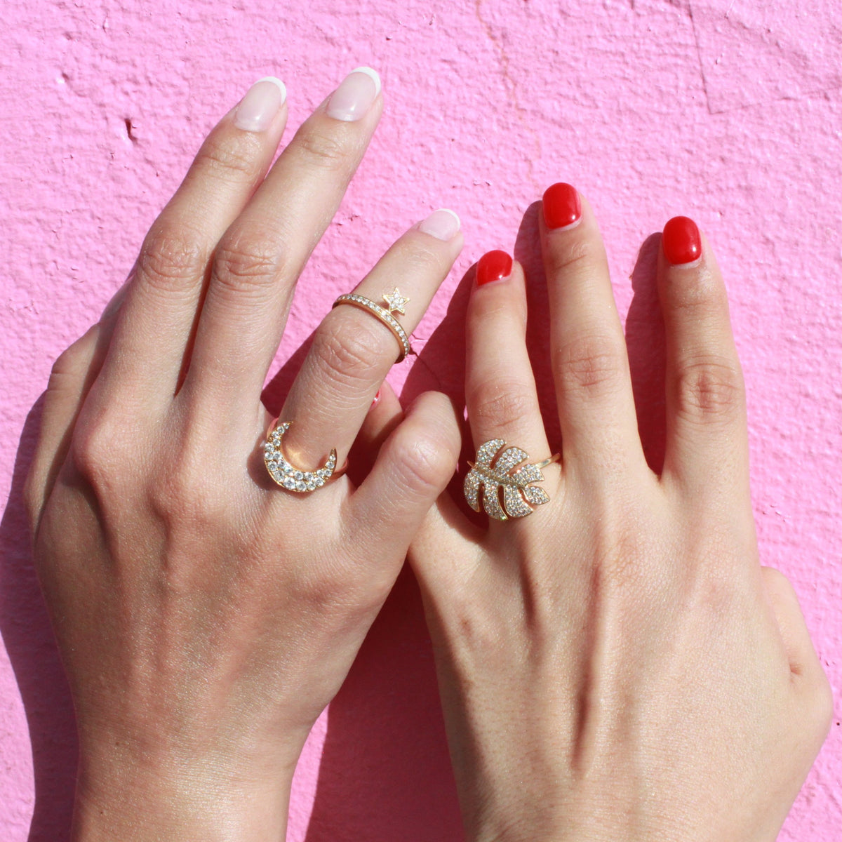デイリー使いしやすいデザインなので、エンゲージリングやマリッジリングとして身につけている方もいます。二つ上下で重ね付けしたり、シンプルなリングと重ねて手元をよりドラマティックに演出したり、楽しみ方は無限です!