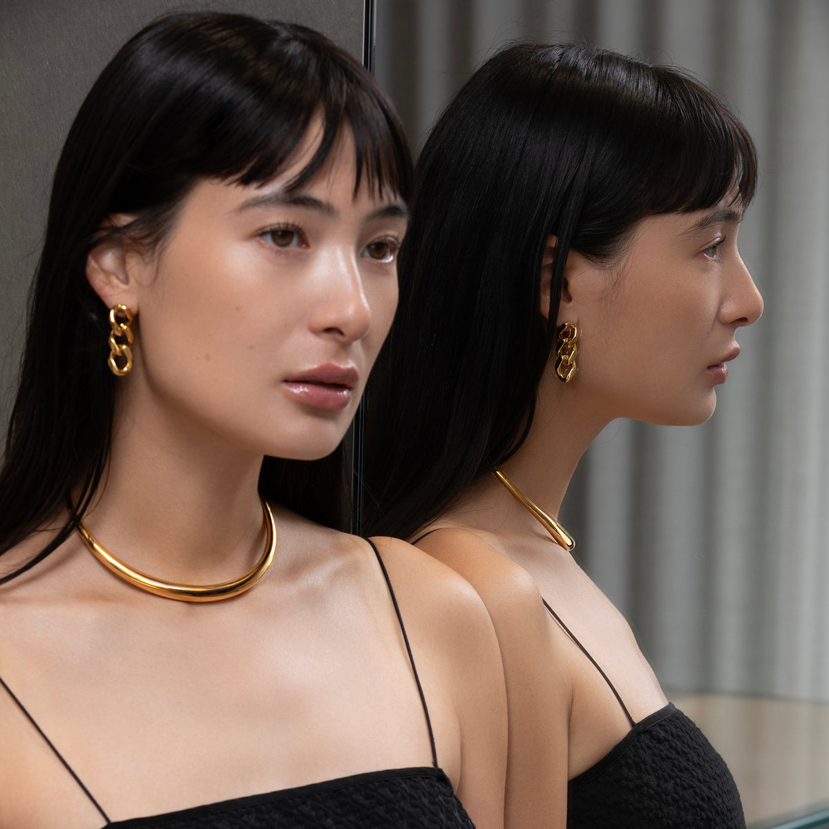 【K18ゴールドプレートの商品について】ご使用後は、必ず柔らかい布で拭いてから保管いただくようお願いいたします。汗や皮脂、日焼け止め、化粧水、香水は、変色や損傷の原因となります。またK18ゴールドプレートのアイテムは、経年劣化に伴い変色の可能性がございます。