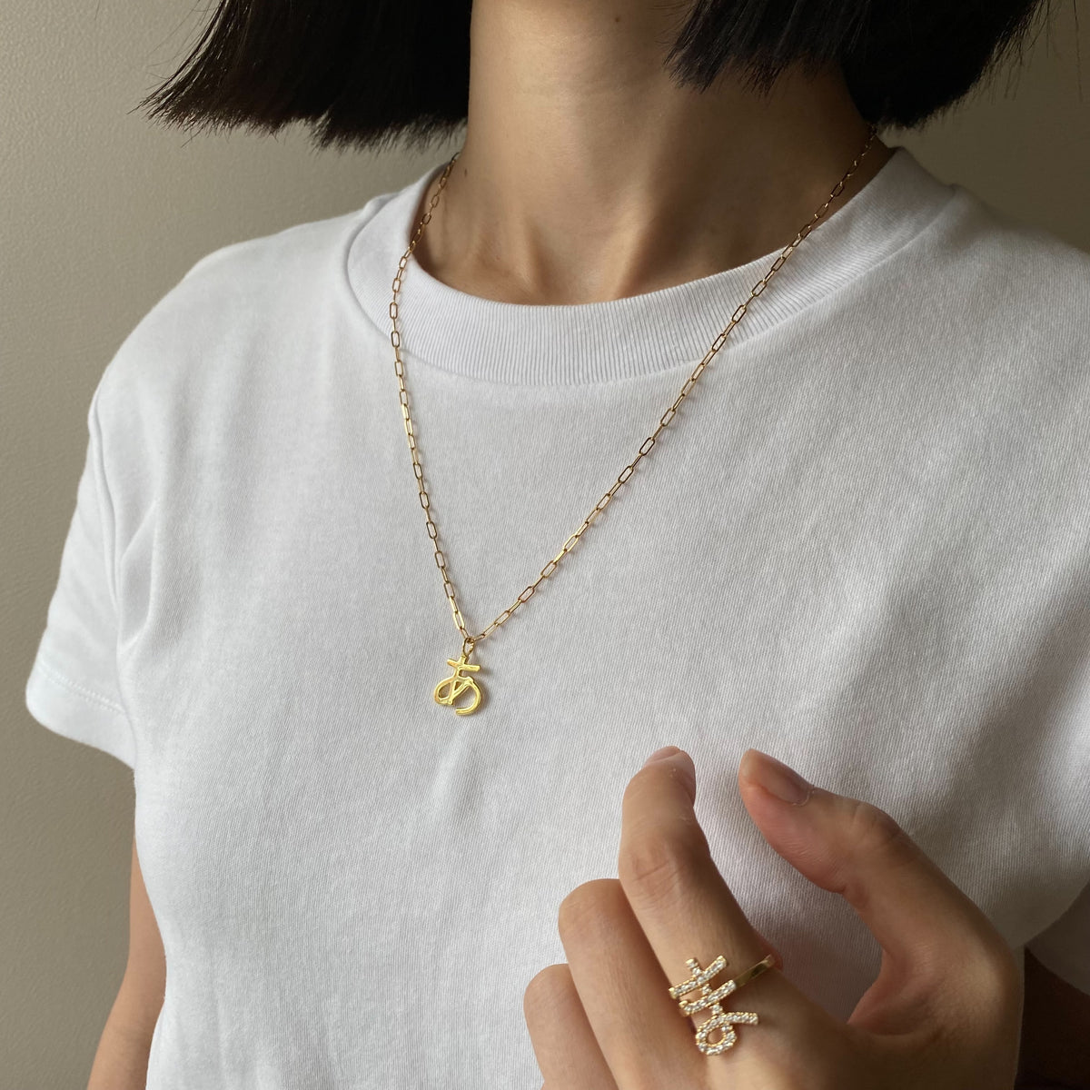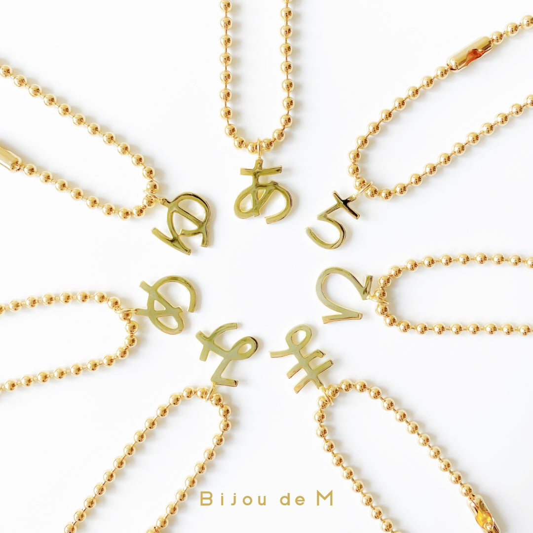 ビジュードエムのアイコニックな"ひらがな”シリーズより、シルバーバージョンのチャームがオンラインストア限定で登場!シルバー925にK18をコーティングした”ひらがな”チャームは、14cmのボールチェーン付き。キーホルダーとしてバックやカギにつけてみたり、別売りのオンラインストア限定SV角チェーンと合わせてネックレスにしてみたり♪他にはないユニークな”ひらがな”デザインはギフトにもぴったりです。