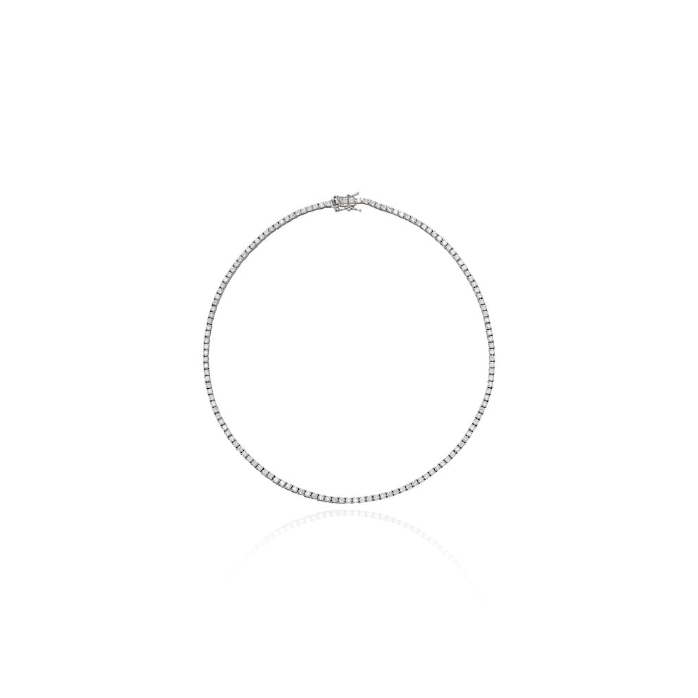 着用モデルの首周り32cm・・・34cmのテニスネックレスを着用