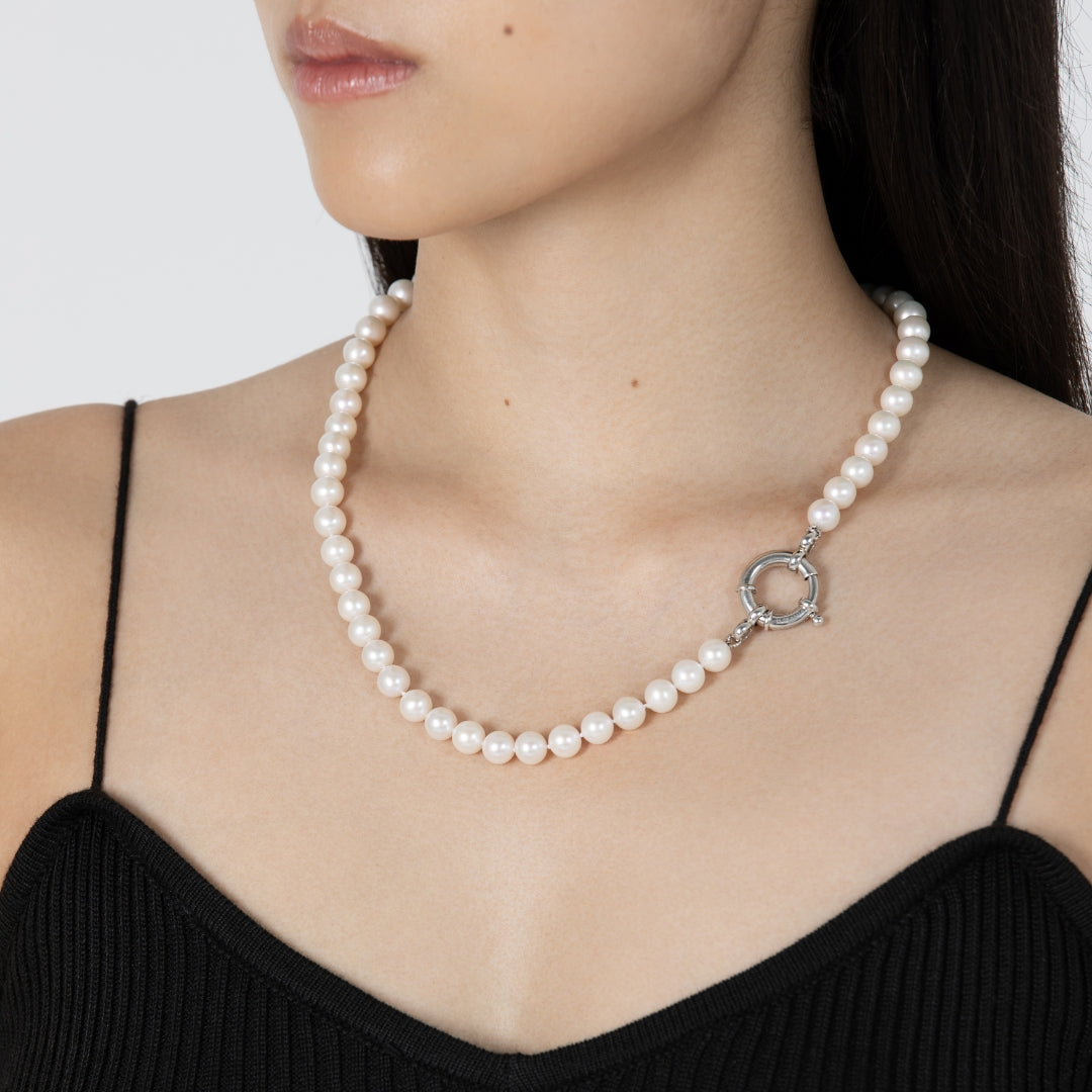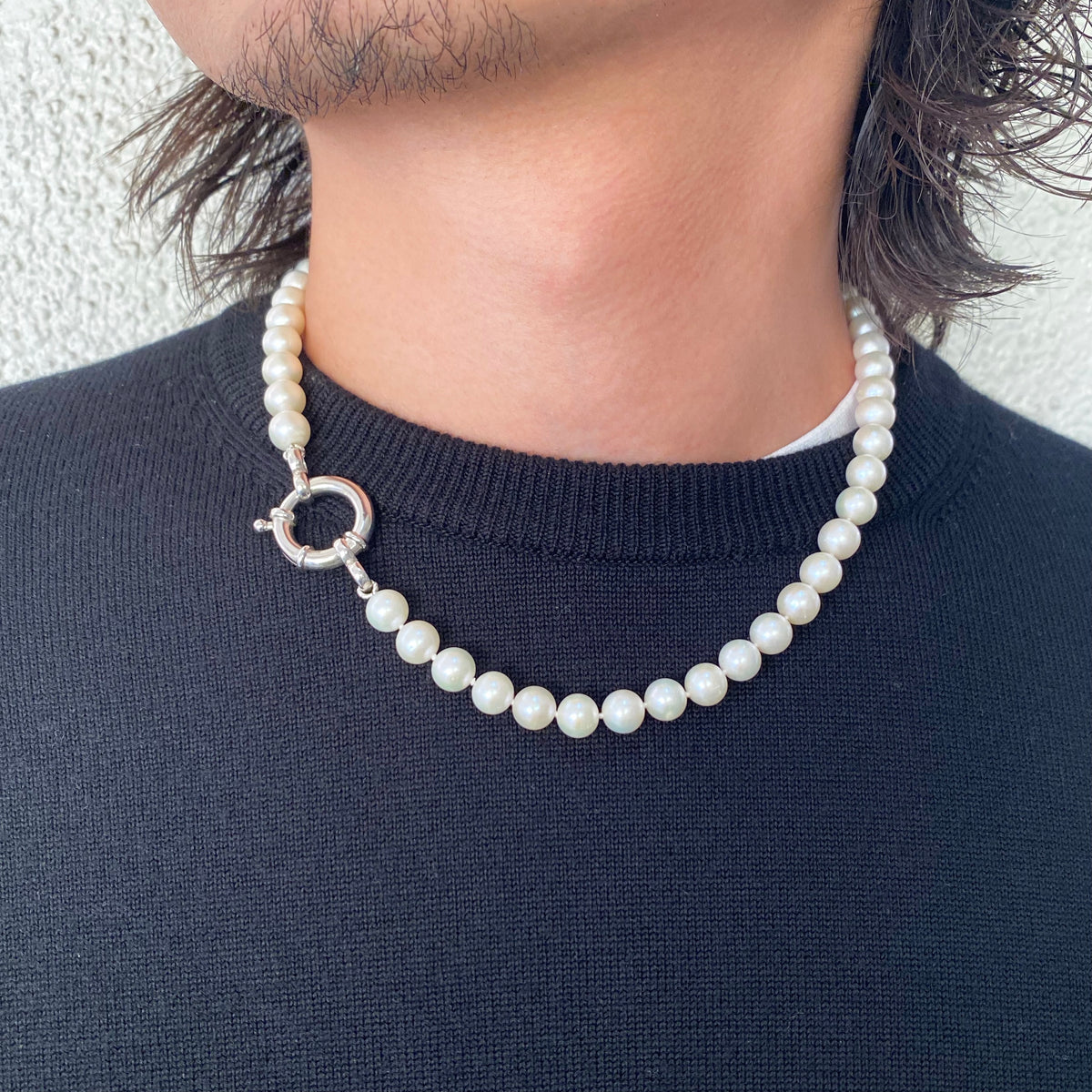男女問わず、パールを身にまとう時代に。汗やお手入れを気にすることなくご使用いただけるように、淡水パールで仕上げました。Tシャツはもちろん、ニットの内側でチラ見せさせたり、シャツの上からコーディネートのアクセントに。シンプルなデザインはシーンを問わず長くお使いいただけます。男性へのプレゼントにも喜ばれるアイテムです。